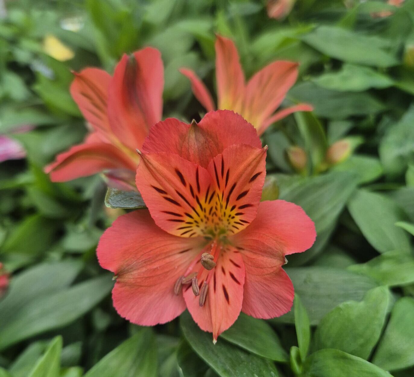 Masses of impressive orange flowers with a soft yellow throat.