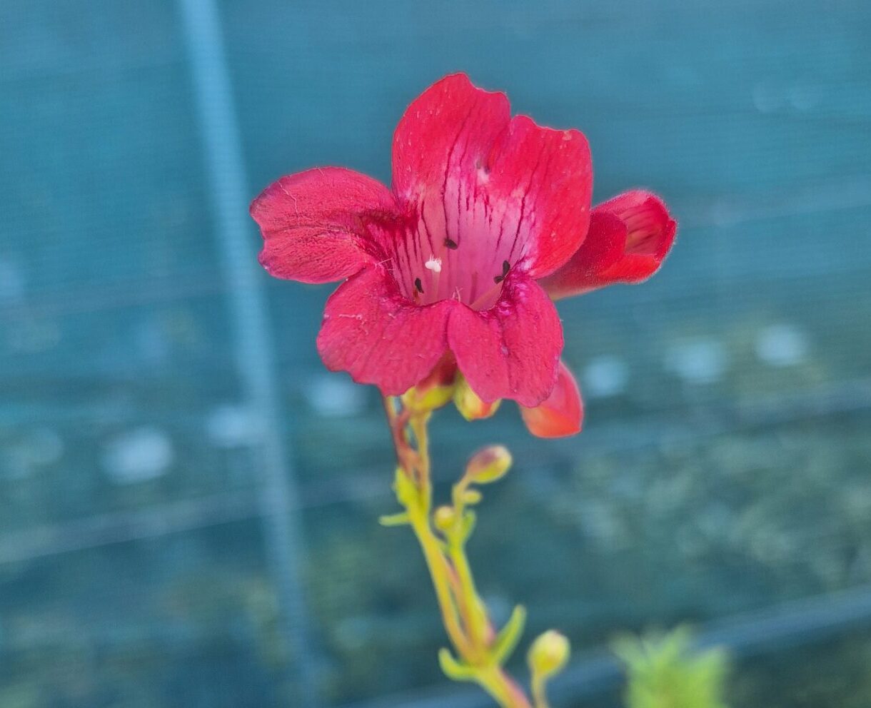 A bushy perennial with elongated green leaves. Flowers are bell shaped in red